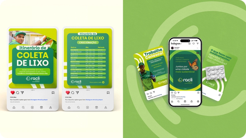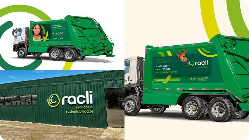 O projeto de identidade visual da Racli Serviços & Sustentabilidade, modernizou a marca sem perder sua essência, reforçando valores de responsabilidade, proximidade e sustentabilidade.