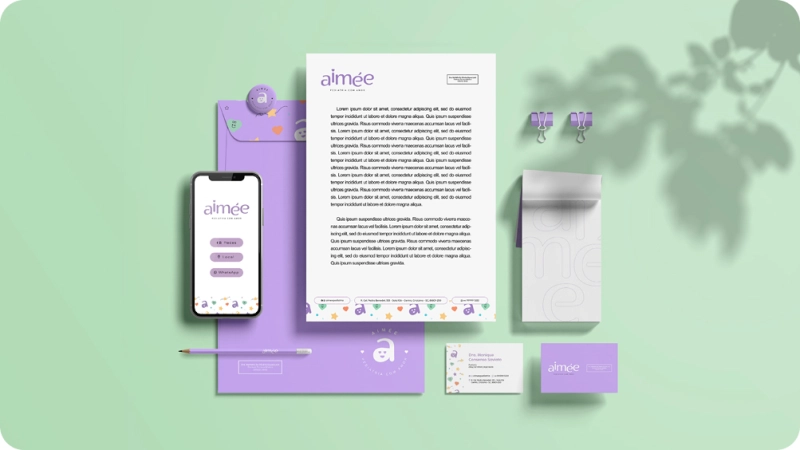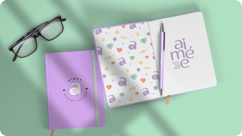A Aimée Pediatria nasceu da união de duas médicas com o propósito de criar uma clínica educativa, científica e acolhedora. O projeto de identidade visual buscou transmitir confiança, proteção e amor por meio de cores suaves, ícones lúdicos e elementos visuais delicados que conectam a marca ao universo infantil de forma leve e encantadora.