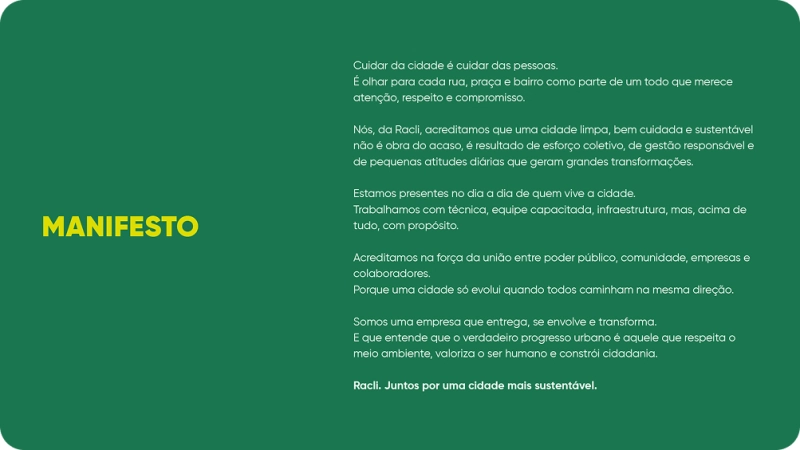 “Juntos por uma cidade mais sustentável.”RACLI SERVIÇOS E SUSTENTABILIDADE